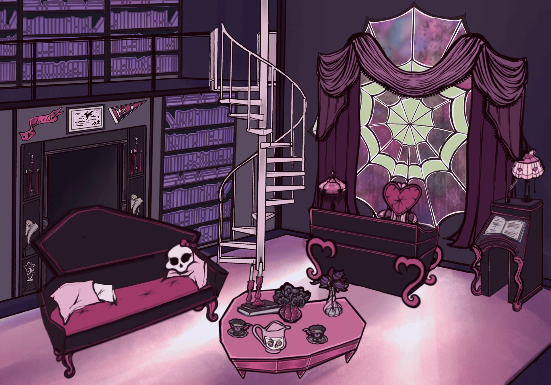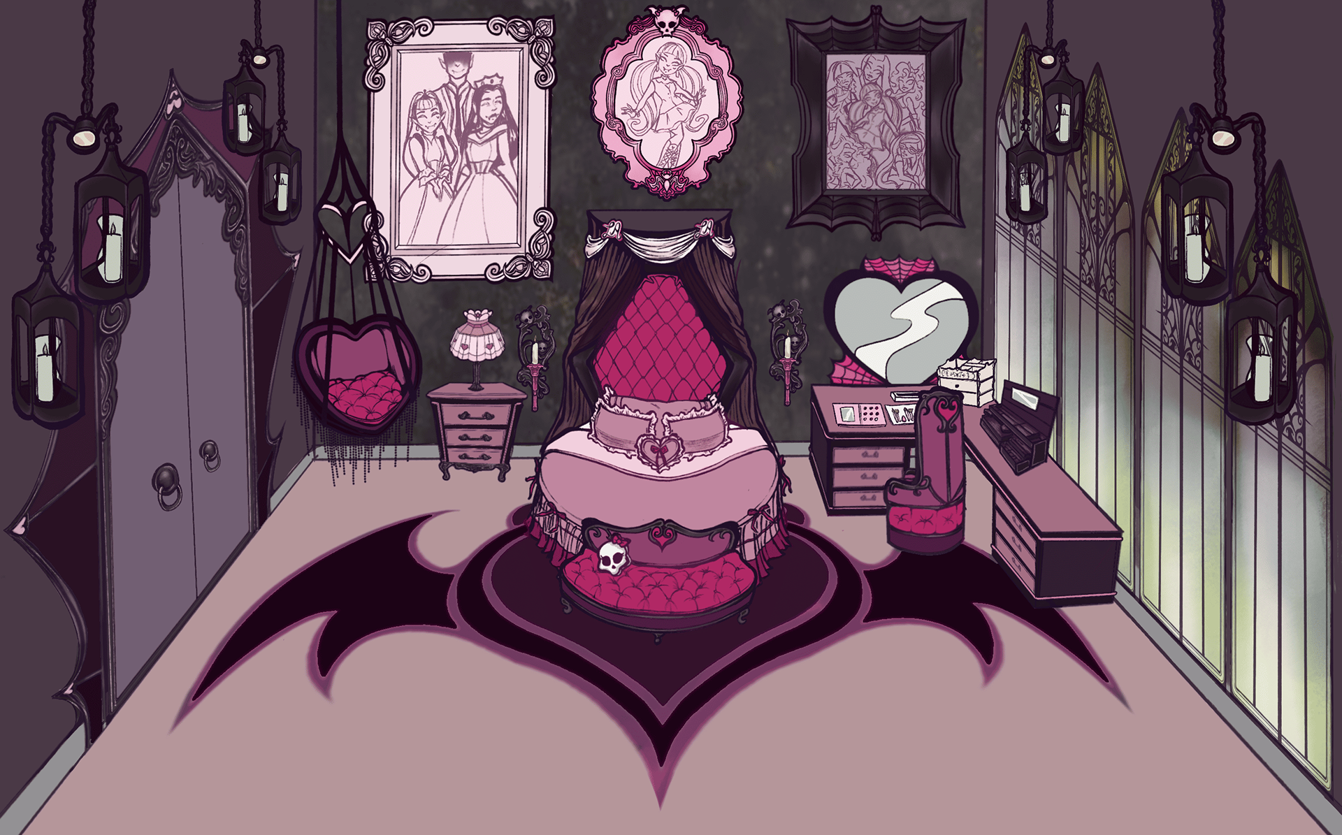 For this project, I chose to design a bedroom and a private study for the character Draculaura, the daughter of Dracula from the first generation of the animated show/toyline “Monster High”.
