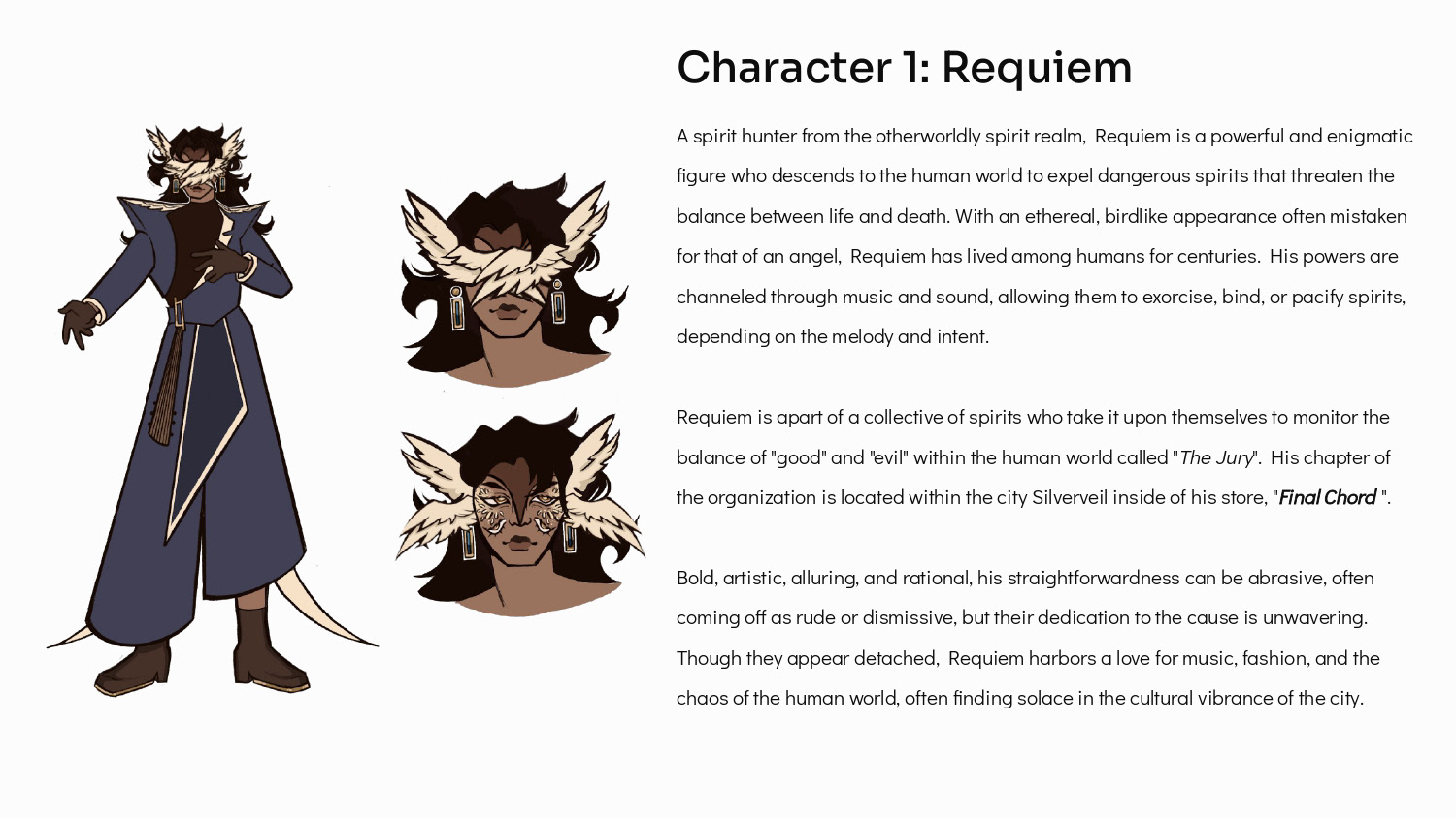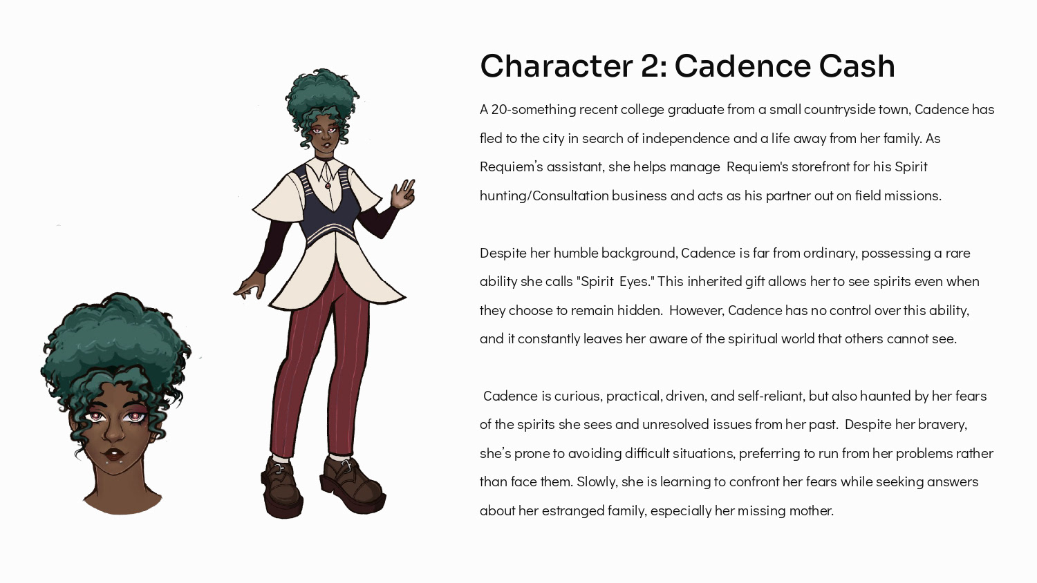 In a city where spirits secretly walk among humans, Requiem, a spirit hunter, runs a shop to help establish balance between the spirit and human realms. Cadence Cash, a recent college graduate with the rare ability to see spirits, stumbles upon Requiem's business by chance and becomes his assistant.
