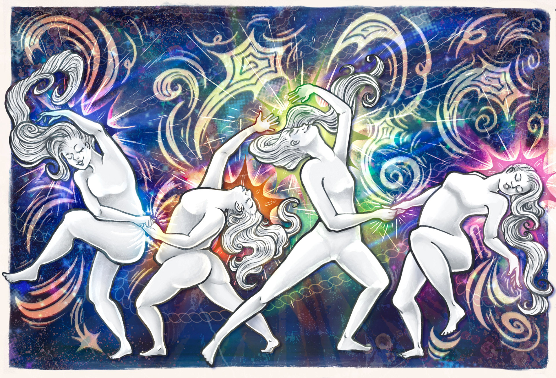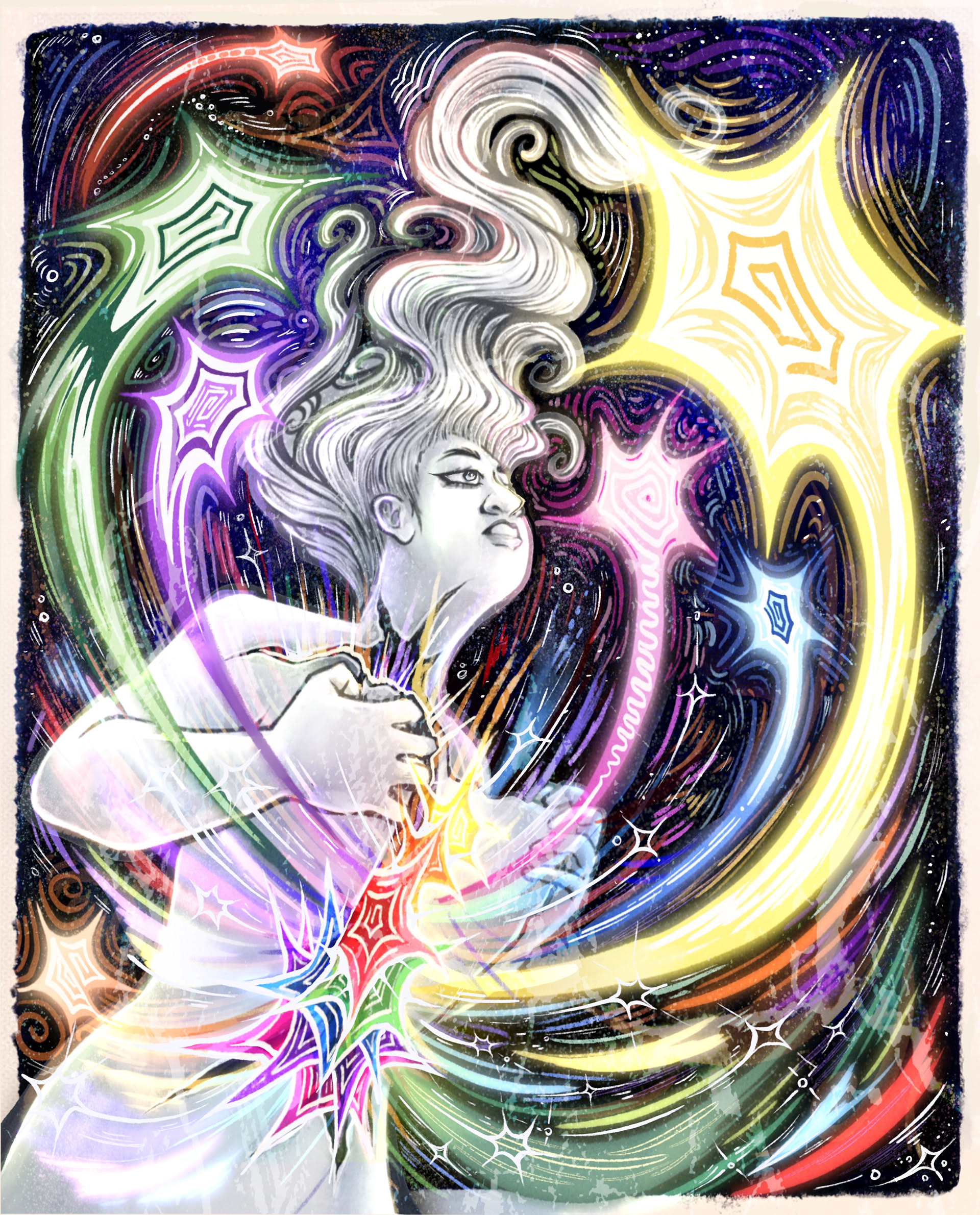 This series focuses on depicting three kinds of wonder through a starry abstract enviornment. Firstly, there's finding the wonder externally, finding it in sound and music, letting it guide you. Secondly, finding the wonder within you know that you know what it looks like. And Lastly, finding wonder in the shared company of loved ones/people you hold dear to you.