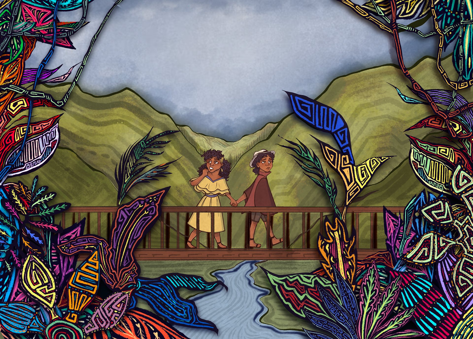 A sample page from a reimagining of the “Hansel and Gretel” fairytale set in the countryside of Panama, my country. While generally adapting traditional visual elements, I also wanted to pay homage to one of the indigenous tribes of Panama, the kuna people and their amazing textile artform, their Molas.