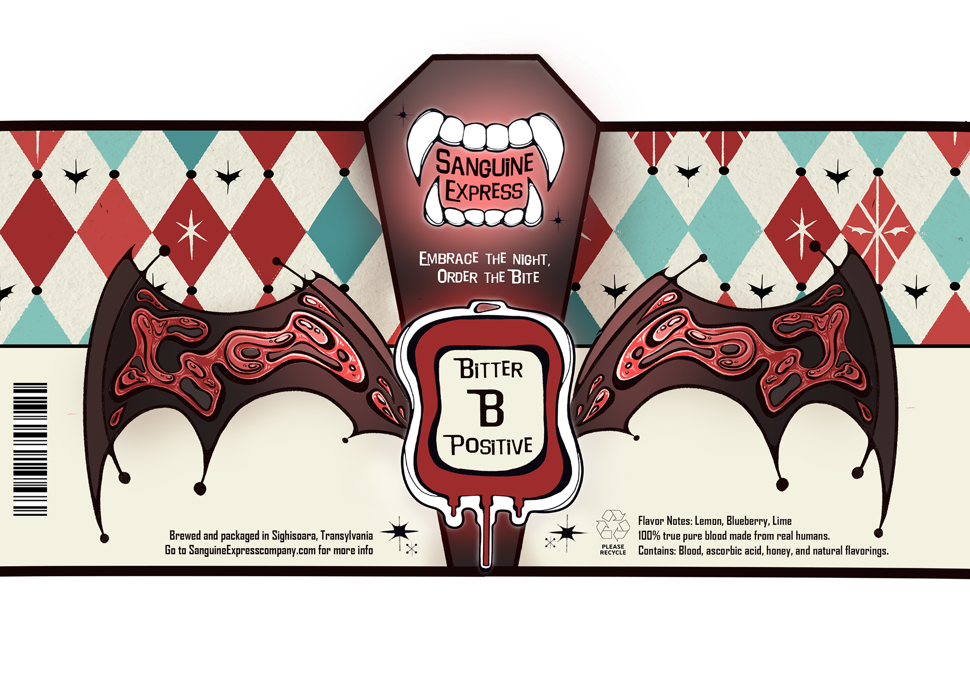 Sanguine Express is a fictional brand developed as a world-building exercise to question what a food delivery service tailored specifically for vampires looks like.