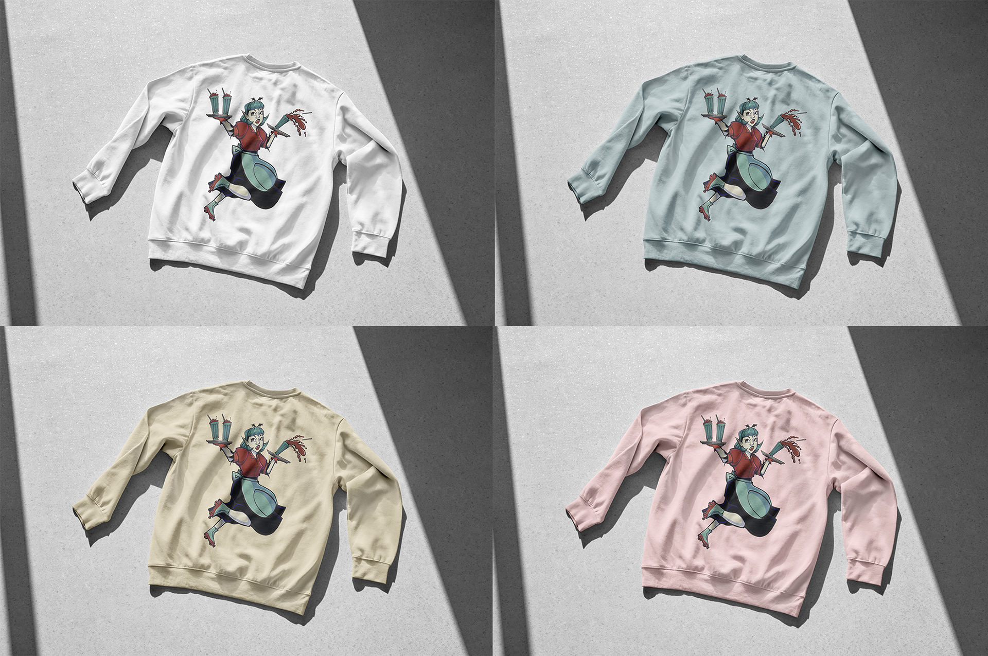 Inspired by retro aesthetics, the deck consists of the brand’s identity, including packaging, patterns, logos, and a unique mascot that embodies the company’s eerie yet charming appeal. The design blends vintage diner and mid-century influences with a gothic twist, creating a playful yet sophisticated brand that caters to nocturnal clientele in need of a fresh supply.